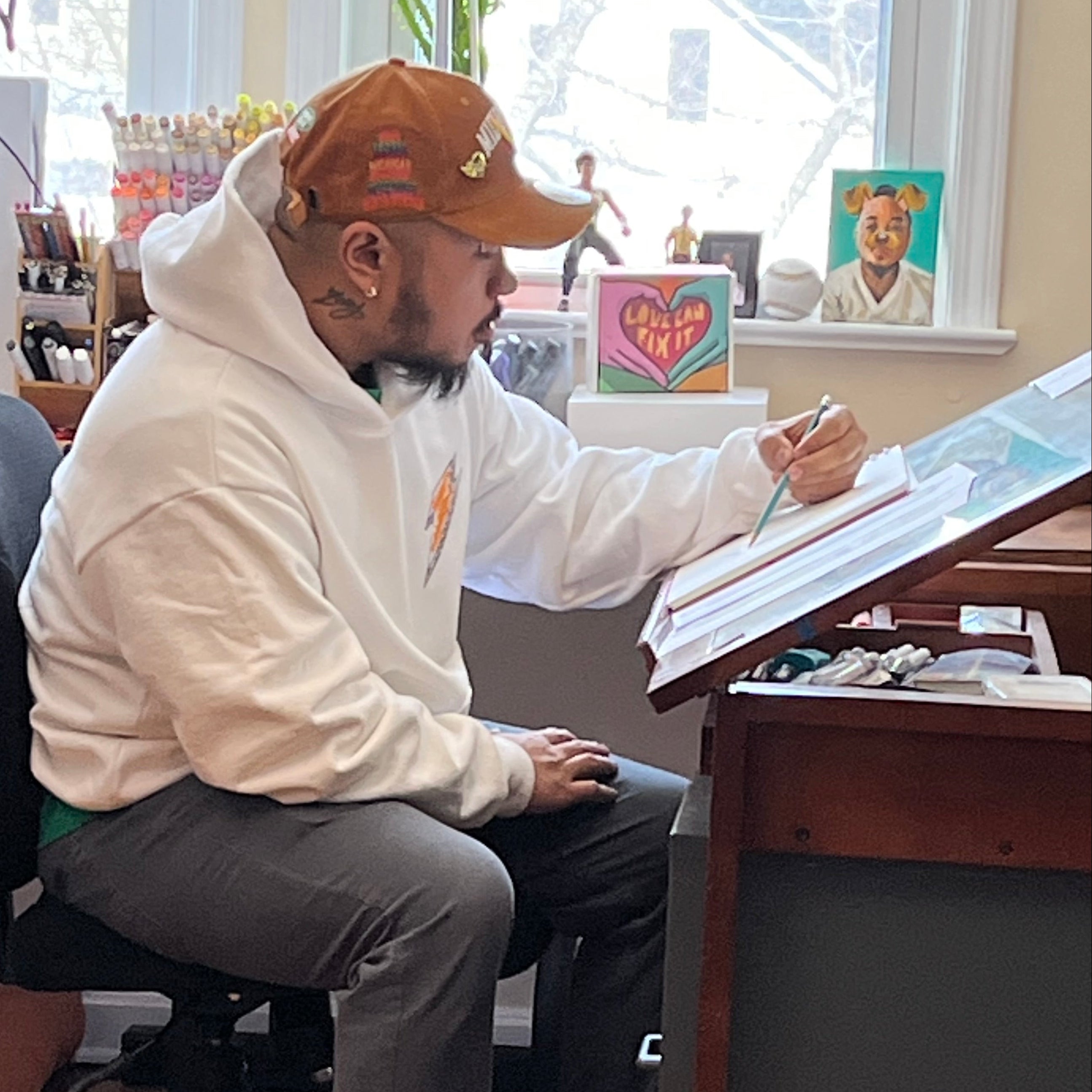 Born and raised on Cleveland’s west side, Glen is the son of Filipino immigrants who arrived in the United States in 1978. His interest in art began at an early age, leading him to attend art classes at the Cleveland Museum of Art starting at just eight years old. He graduated from Valley Forge High School in 2000 and later attended Cuyahoga Community College, though he left early to work full-time and support his newborn daughter, Zoey, born in 2007.